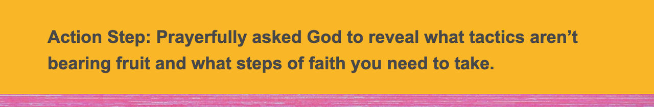 If your strategic plan is not getting you closer to your goals, you do not need to keep doing the same things over and over again with more effort. That sounds a lot like depending on the flesh rather than walking by faith in the power of the Holy Spirit. I am not saying that every plan you make as you walk in the Spirit will be successful. I am saying that if your plans are not producing fruit, do not keep repeating them, thinking that they will eventually work. Prayerfully evaluate. Learn more about the people you are trying to reach or disciple. Ask God for that wisdom that He has promised to give you. Then, try something new. You might tweak your original plan a little and try it again. Or, you might just scrap it altogether for something radically different.